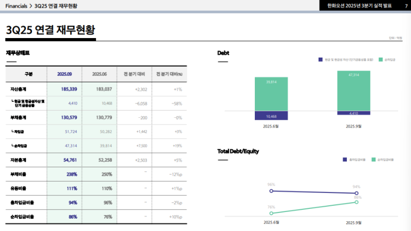 • 순차입금: 4조 7,314억 원(QoQ +7,500억 원)