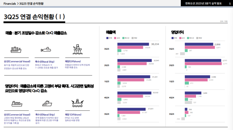 • 상선 매출은 조업일수 감소와 FD5·FD6 도크 전기 교체로 약 1~2주 생산 중단 발생