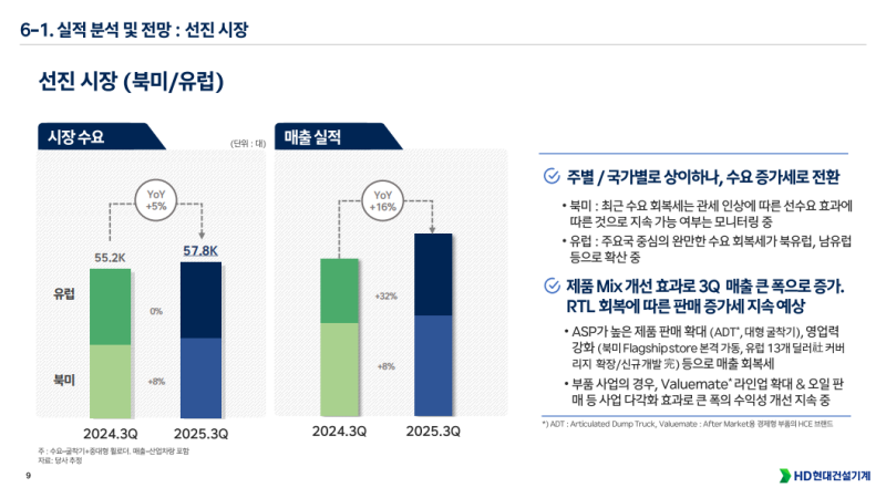 • 대형 굴착기 및 ADT 등 단가가 높은 제품 판매 확대가 매출 증가에 기여