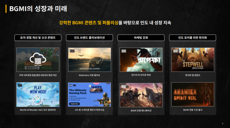 • BGMI를 통해 현지 퍼블리셔로서 확고한 입지를 구축