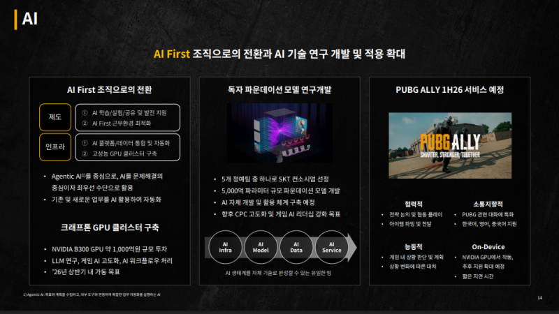 • 크래프톤은 SKT 컨소시엄과 함께 5,000억 파라미터 규모의 파운데이션 모델 개발 예정