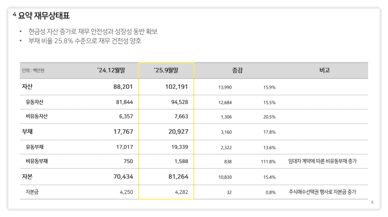 25년 9월 말 기준 재무상태