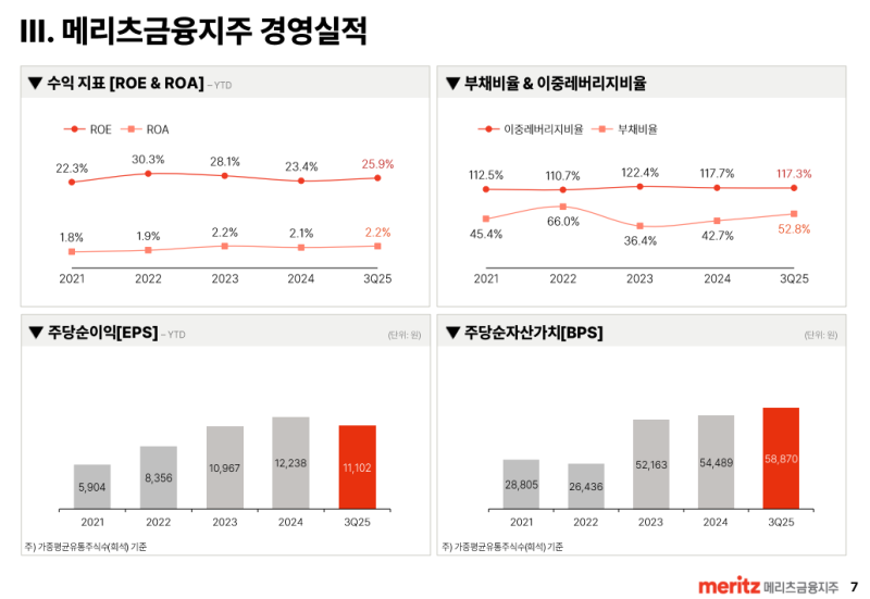 • 메리츠금융그룹은 2026회계연도부터 향후 3년간 ‘연결기준 당기순이익 50% 주주환원율’ 원칙을 지속하기로 결정