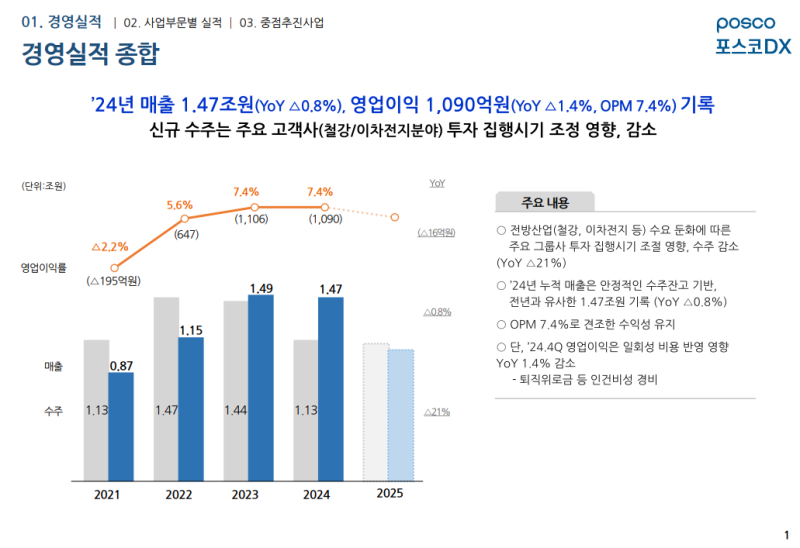 선제적 비용 절감을 통해 3Q25 영업이익률 8.9%의 견조한 수익성을 확보하였으며, 이연되었던 제철소 설비 신예화 수주 재개와 2026년 2차전지 소재 분야 수주 목표 2배 상향을 통한 실적 회복 기반 마련