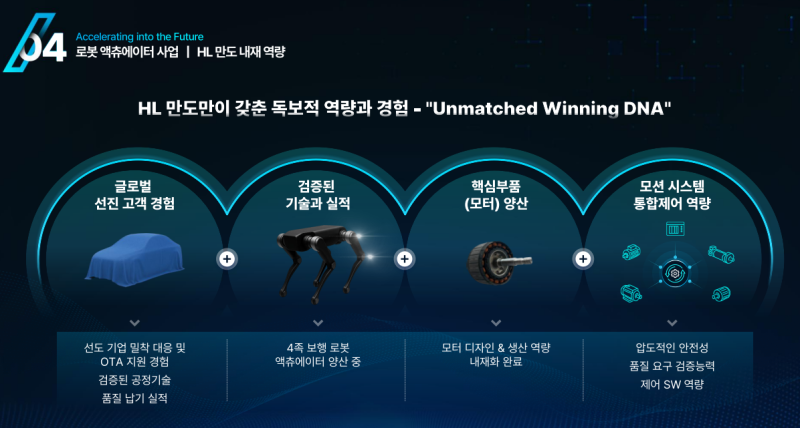 기존 샤시 액추에이터 역량을 바탕으로 로보틱스 3종 마스터 모델 개발 및 하반기 본격 마케팅 돌입