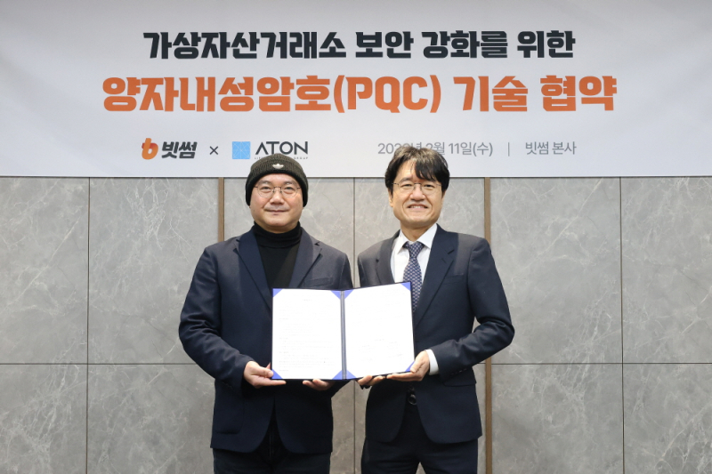 아톤은 지난 11일 빗썸과 '양자내성암호(PQC) 보안 솔루션 도입을 위한 기술협약'을 체결했다고 20일 밝혔다. 이번 협약에 따라 아톤은 자체 개발한 '퀀텀 세이프(Quantum Safe)' 제품군 기반 보안 솔루션을 빗썸 거래 플랫폼에 적용한다. 국내 가상자산 거래소가 PQC 솔루션을 상용 도입하기로 결정한 것은 빗썸이 최초다.