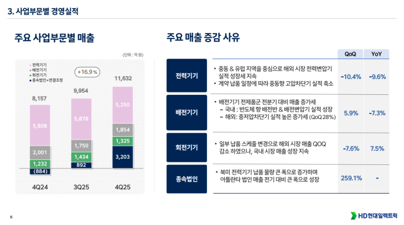 • 북미 전력기기 납품 호조에 따른 아틀란타 법인 매출 증가로 4Q25 영업이익률 상승의 주요 요인으로 작용