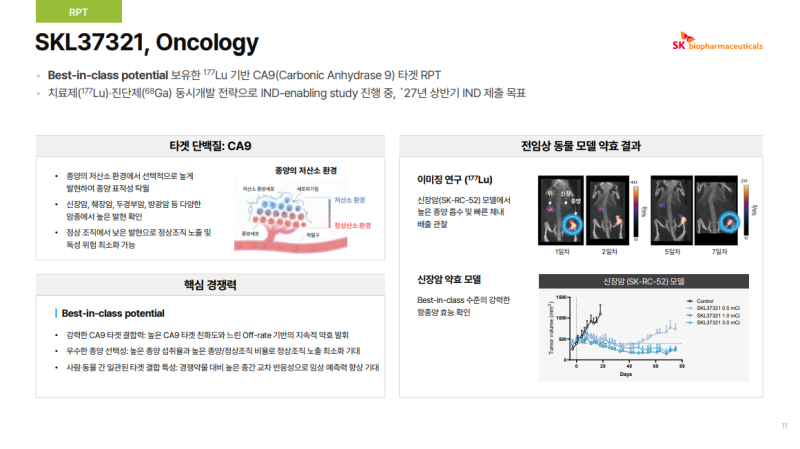 • SKL37321(177Lu-CA9) 2027년 상반기 IND 목표, Theranostics 전략 병행