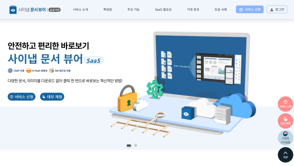 실제 도입 사례도 나오고 있다. 청송군은 전국 지자체 가운데 처음으로 사이냅 문서뷰어 SaaS를 도입해 스마트 행정 체계를 구축했다. SaaS 기반 운영을 통해 유지보수 효율성을 높였으며, 군민들에게 안전하고 편리한 온라인 문서 열람 서비스를 제공해 긍정적인 평가를 받고 있다.