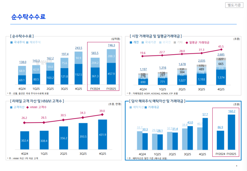 • 고객 예탁금 잔고: 2024년 4Q 9.6조 원 → 2025년 4Q 15.3조 원으로 증가