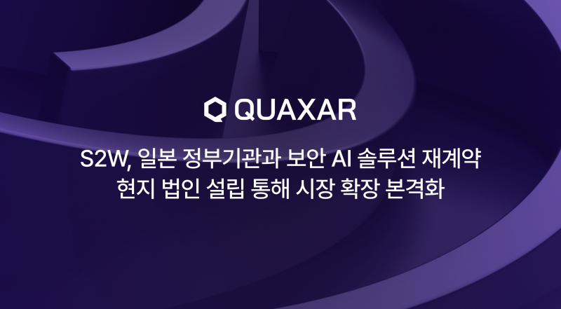 S2W는 일본 정부기관과 기업 및 기관용 보안 AI 솔루션 '퀘이사(QUAXAR)' 공급 재계약을 체결했다고 12일 밝혔다. 이번 계약은 서비스 제공 범위가 대폭 확대됐으며, 계약 금액은 전년도 최초 계약 대비 3.5배를 웃돈다.