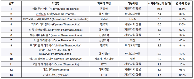 범KRAS 저해제 '레볼루션', 뇌전증 신약 '제논', 비만 RNAi로 주목 '애로우헤드' 등