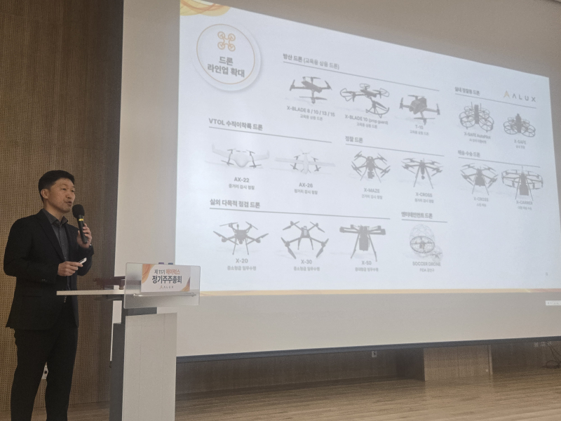드론 종합 밸류체인 업체 에이럭스가 26일 서울 도봉구 창동 아우르네에서 열린 주주총회에서 상정 안건 의결을 마무리 하고, 올해 내 2건의 대규모 수주가 기대된다는 입장을 밝혔다.