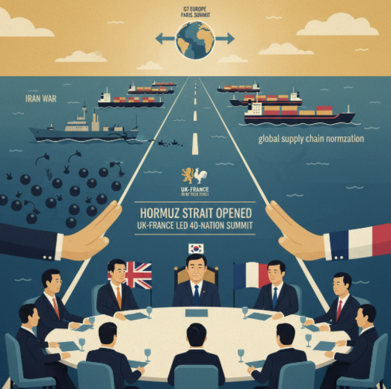 스타머 총리는 사전 메시지를 통해 호르무즈 해협을 즉시 재개방하는 것이 전 지구적 과제라며 글로벌 에너지 및 물류망 정상화를 촉구했다.
